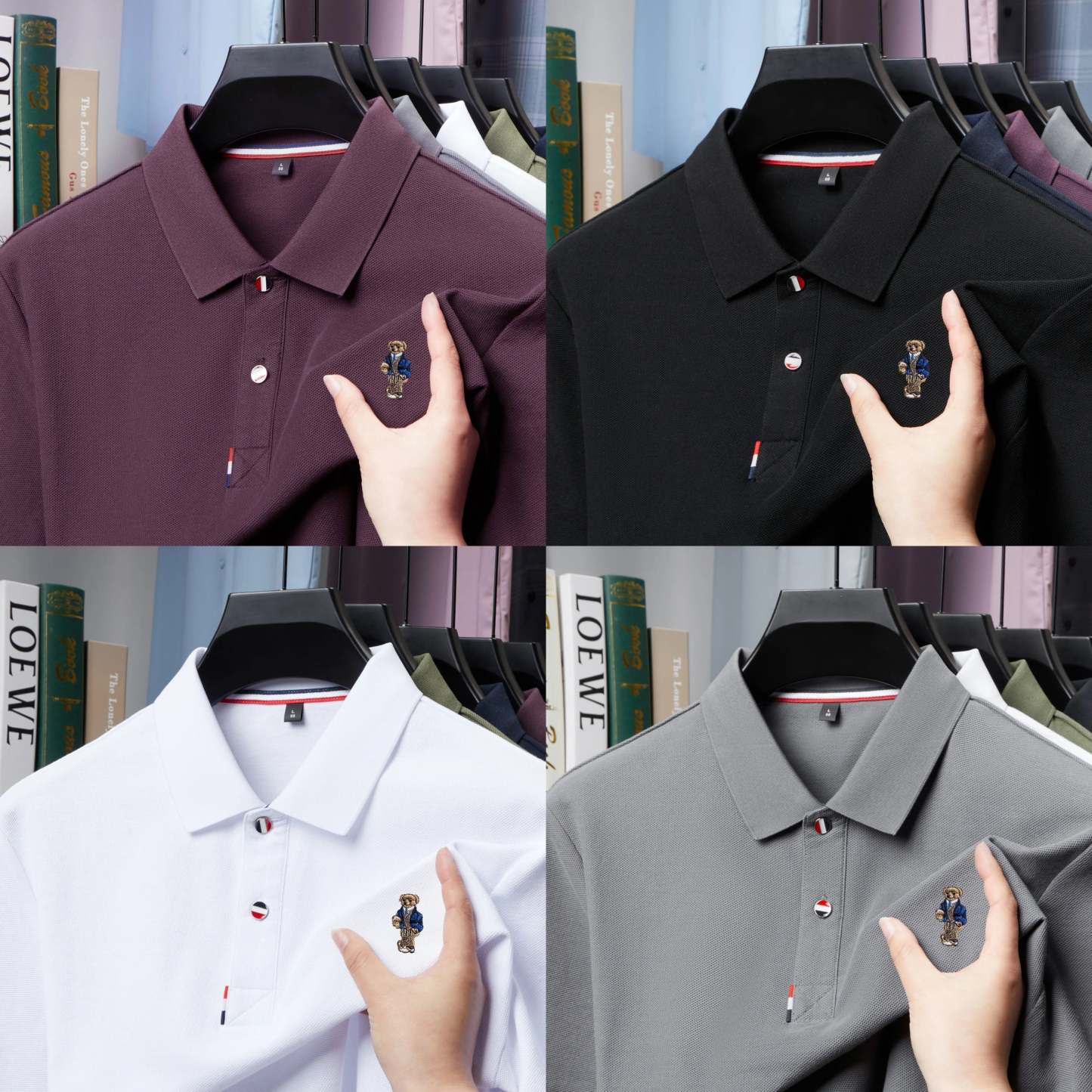 100% pure cotton summer mens teddy bear embroidered short sleeve Polo T-Shirt