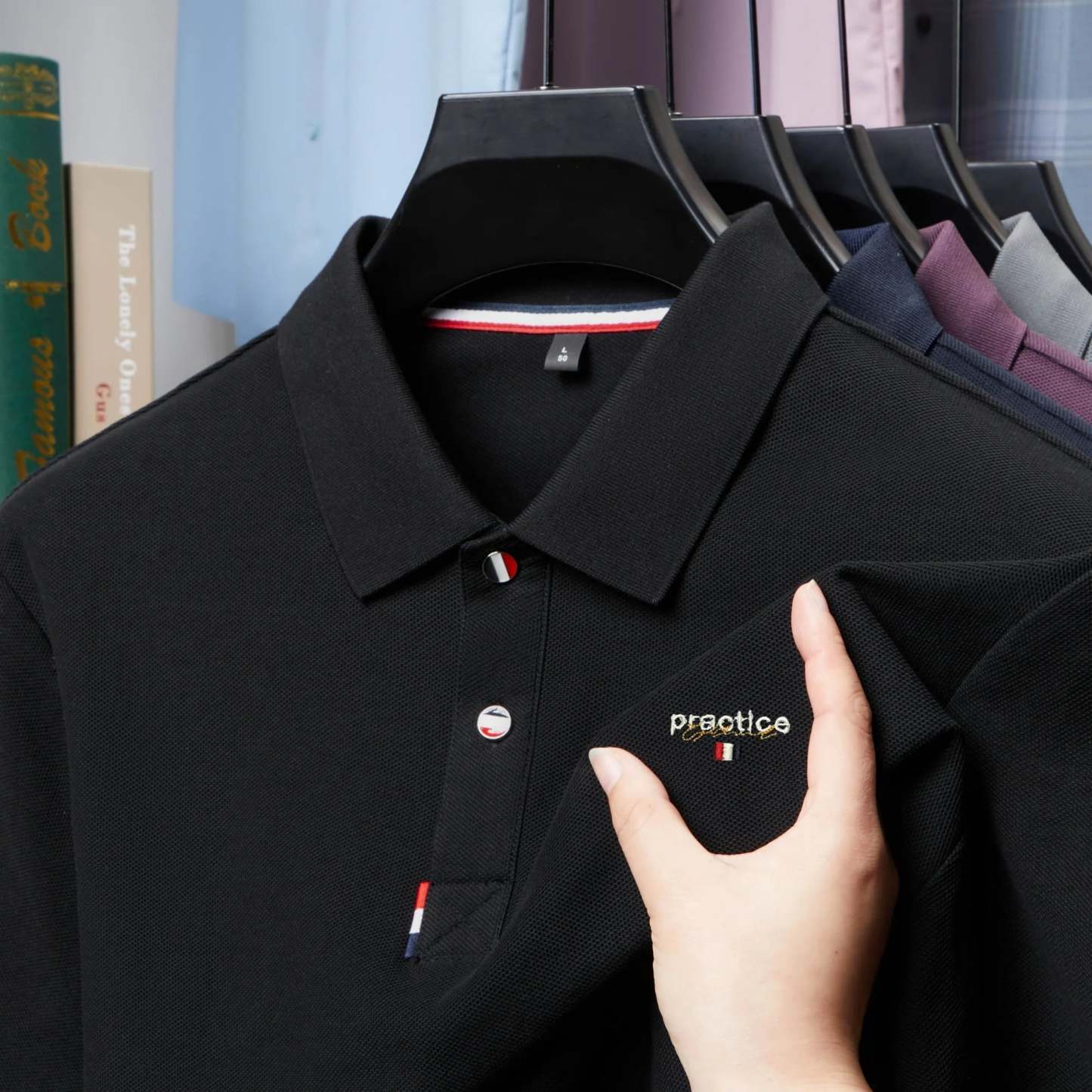 Brand letter embroidery 100% pure cotton short sleeve Polo T-shirt