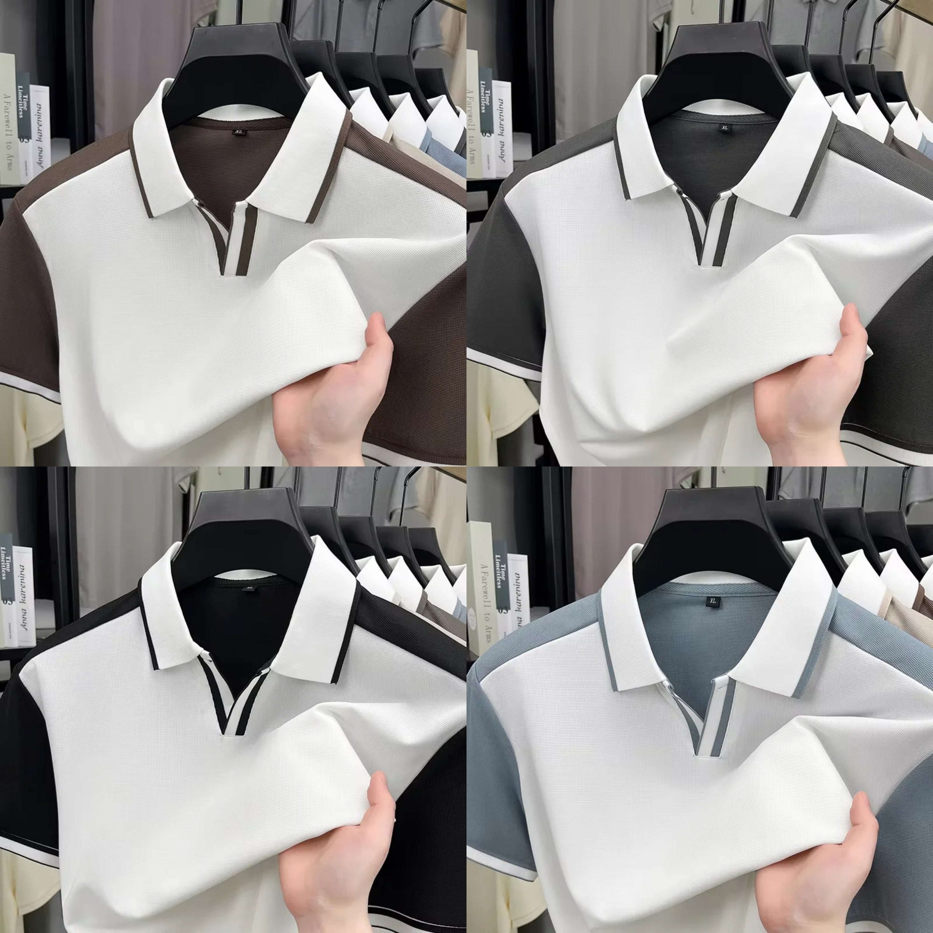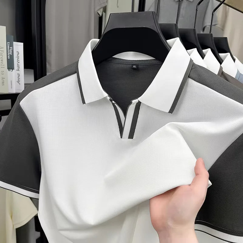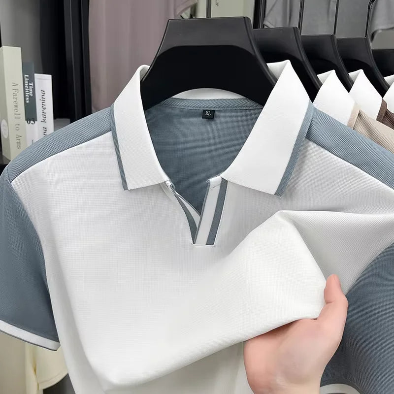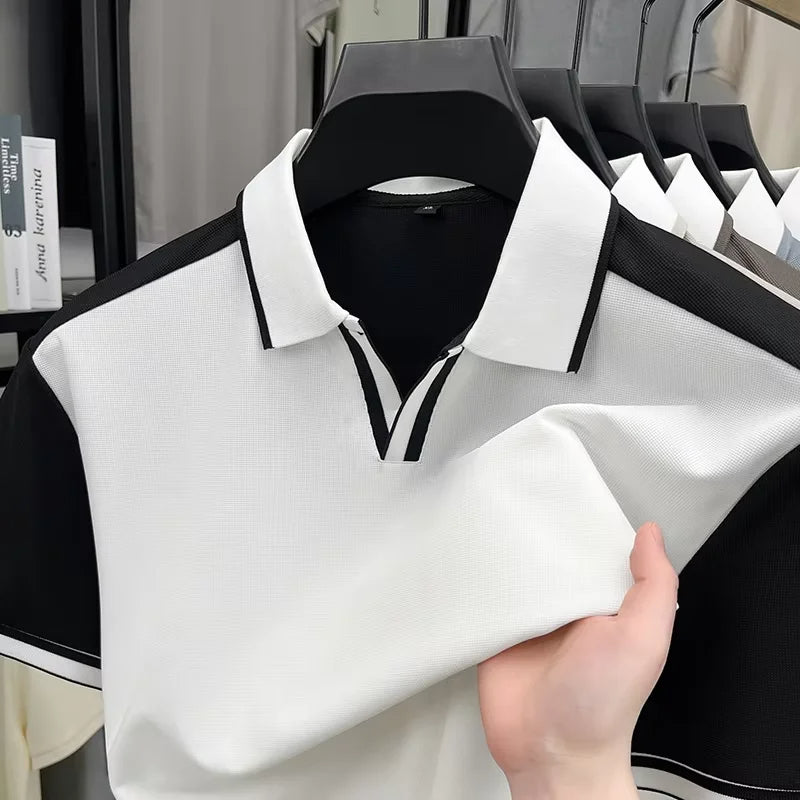 Fashion personality color blocked men's short sleeve polo T-shirt