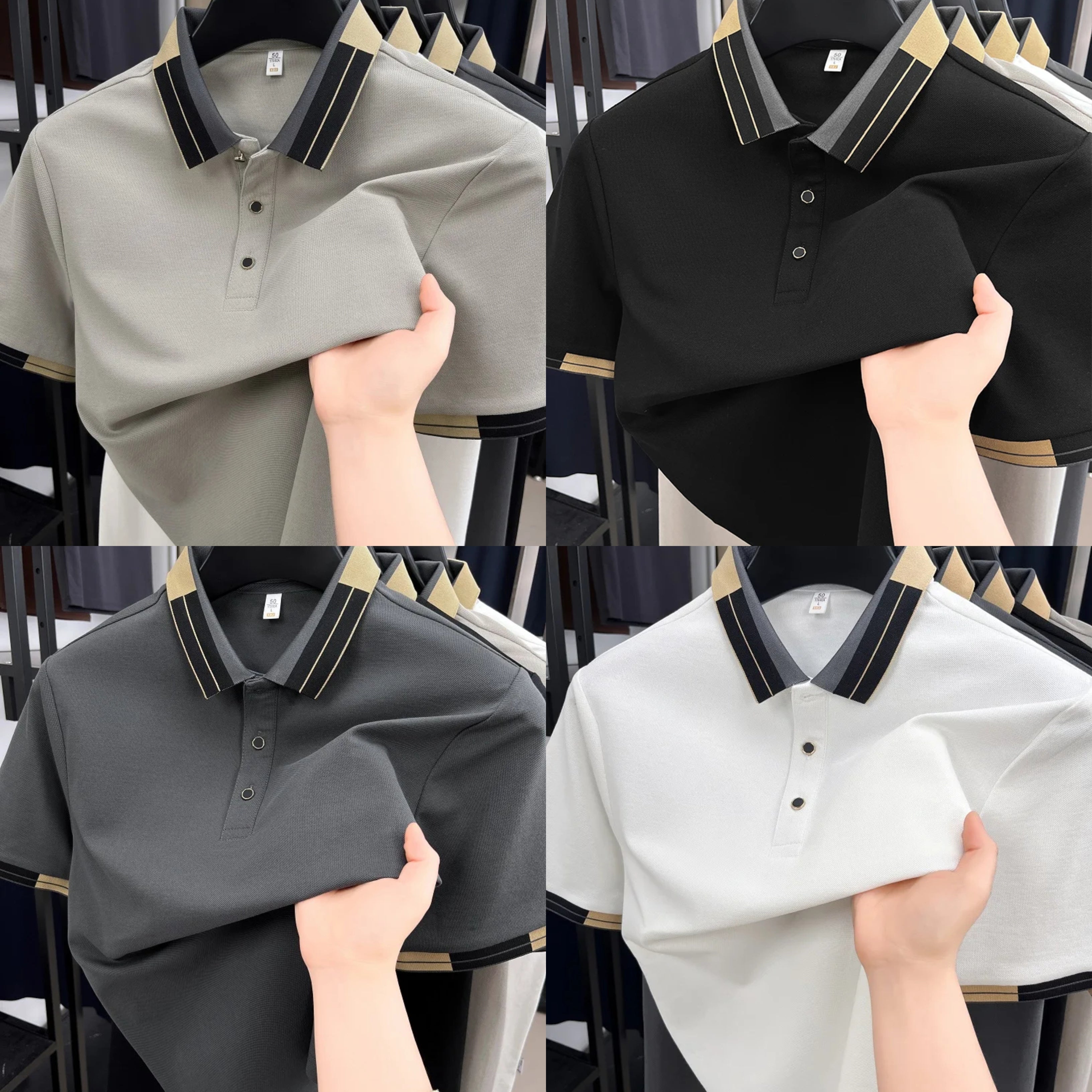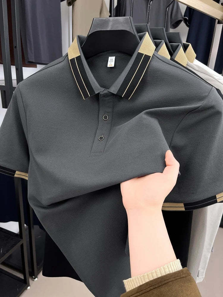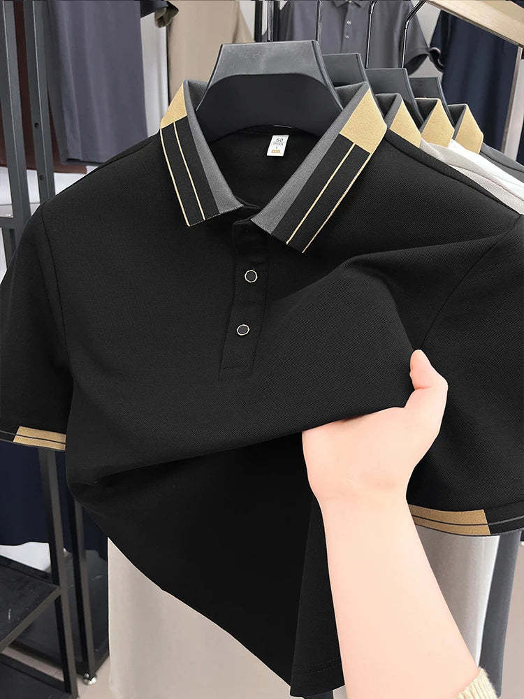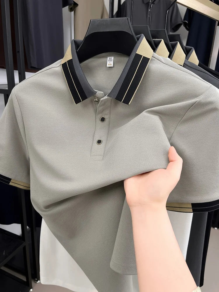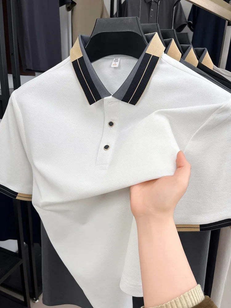 High end fashion color blocked short sleeve Polo T-shirt men