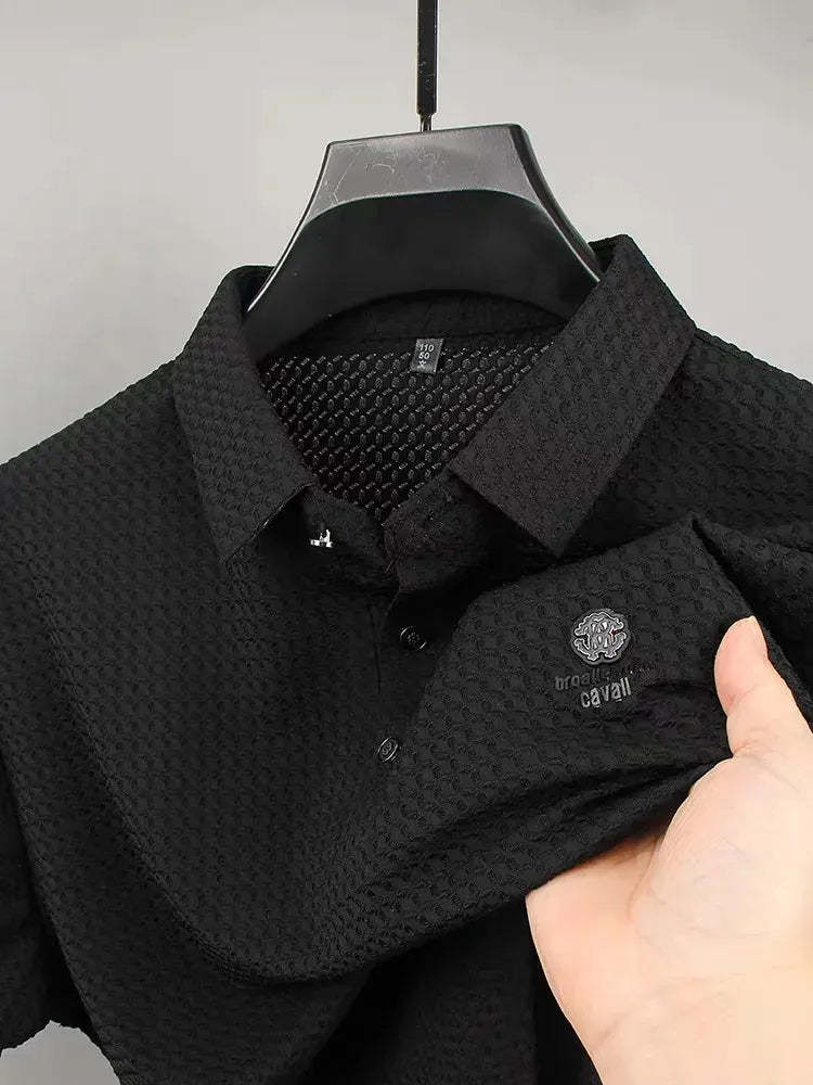 Stylish Design: Featuring a classic polo collar and a two-button placket.