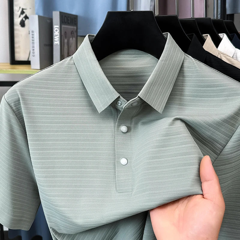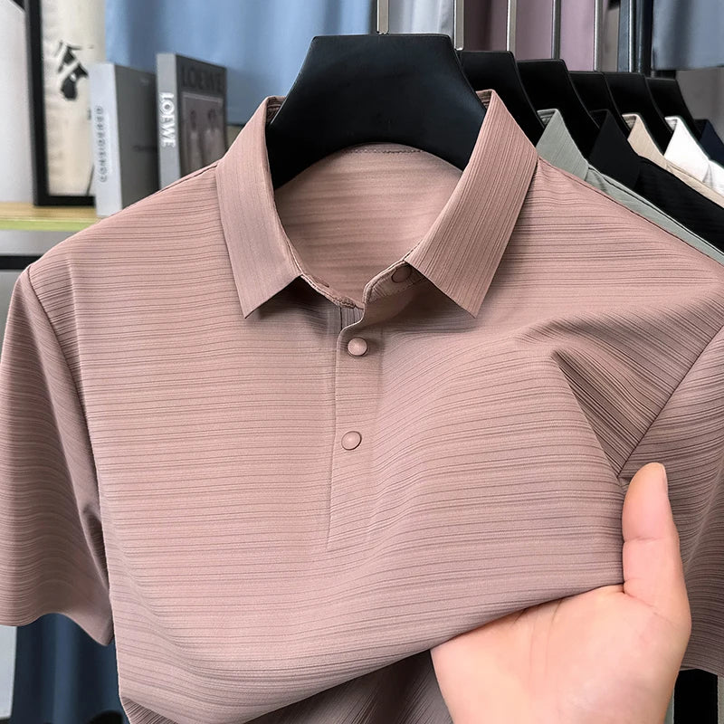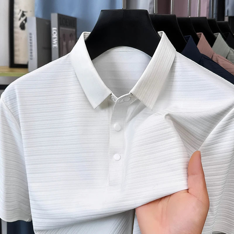 High quality unique texture line short sleeve polo T-shirt