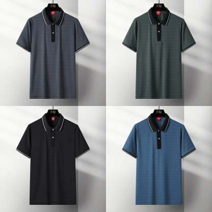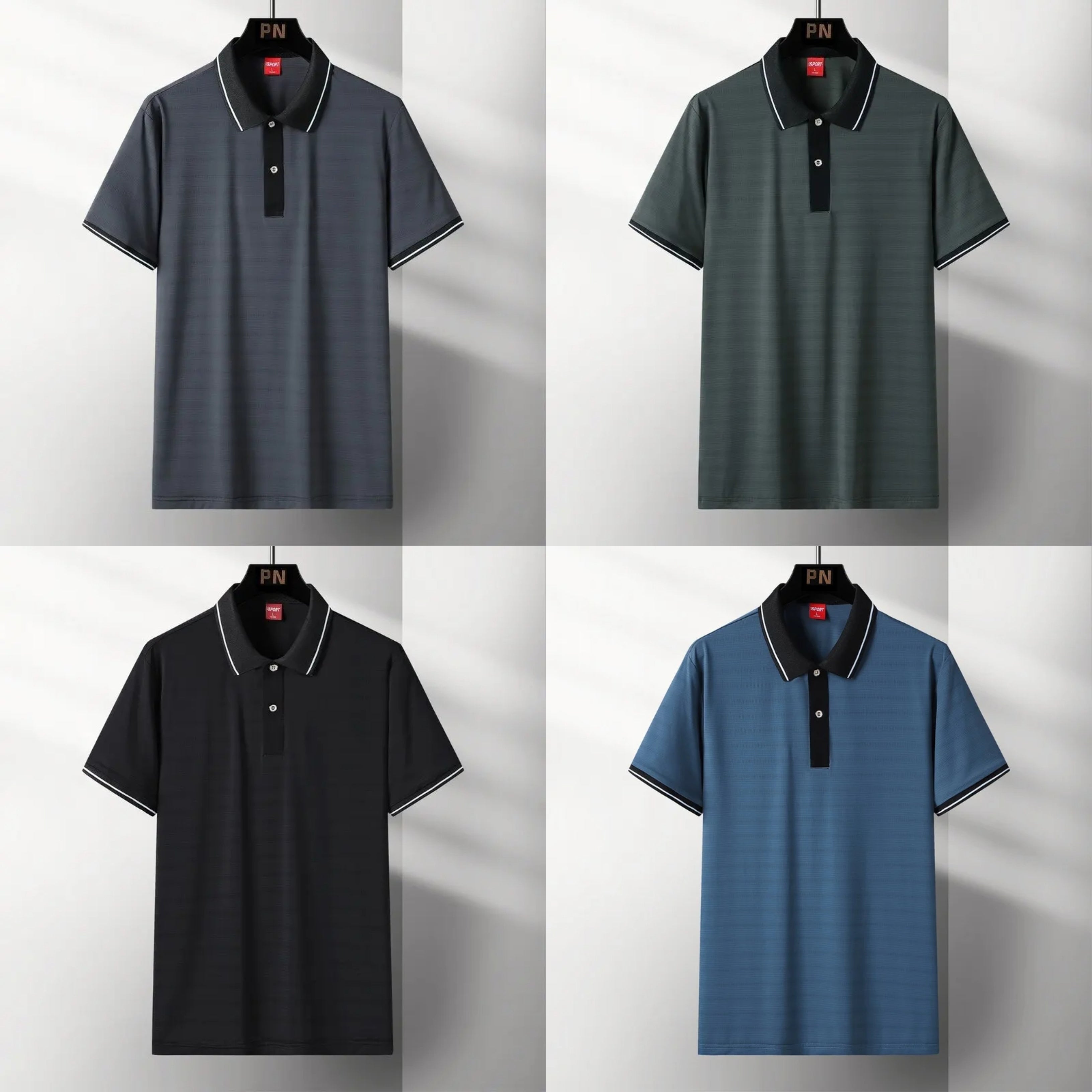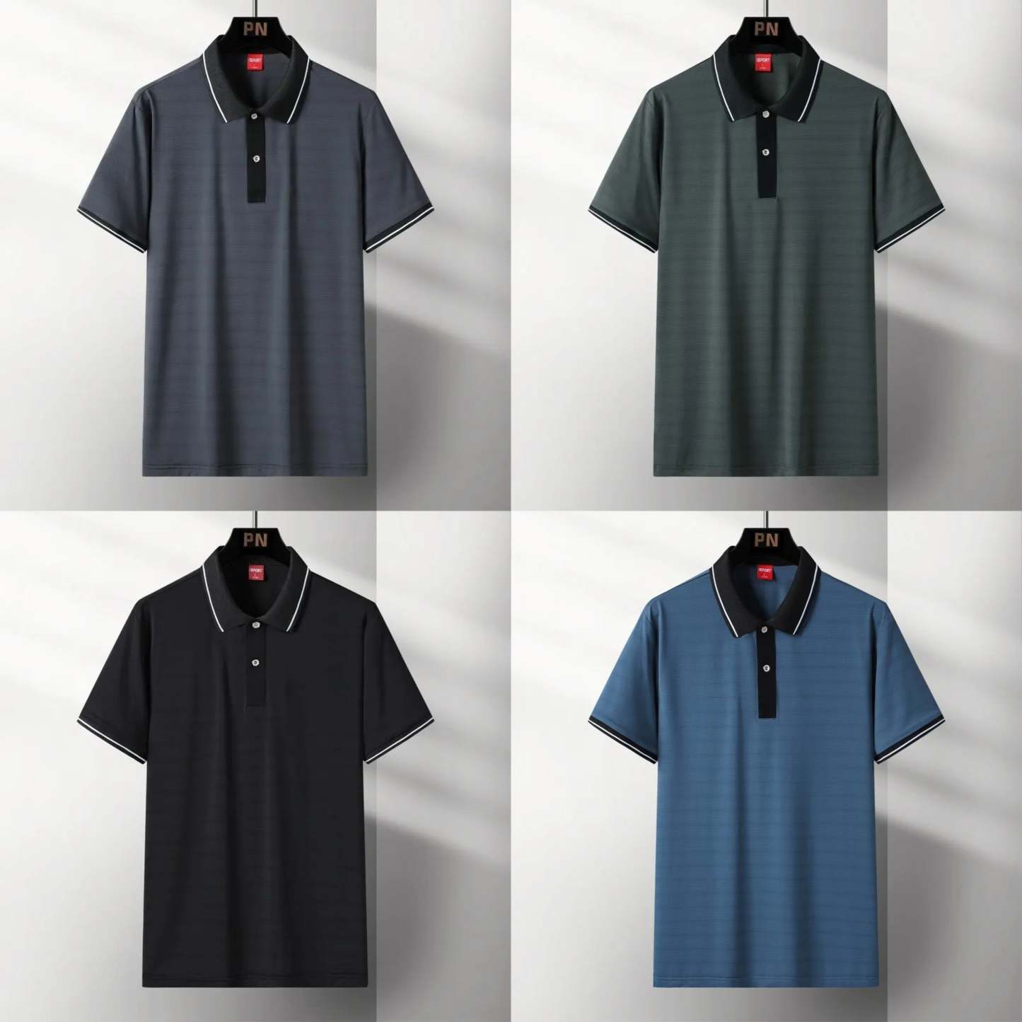 Ice Silk Short-sleeved Mesh Air Conditioning Suit Middle-aged Men's Polo T-shirt