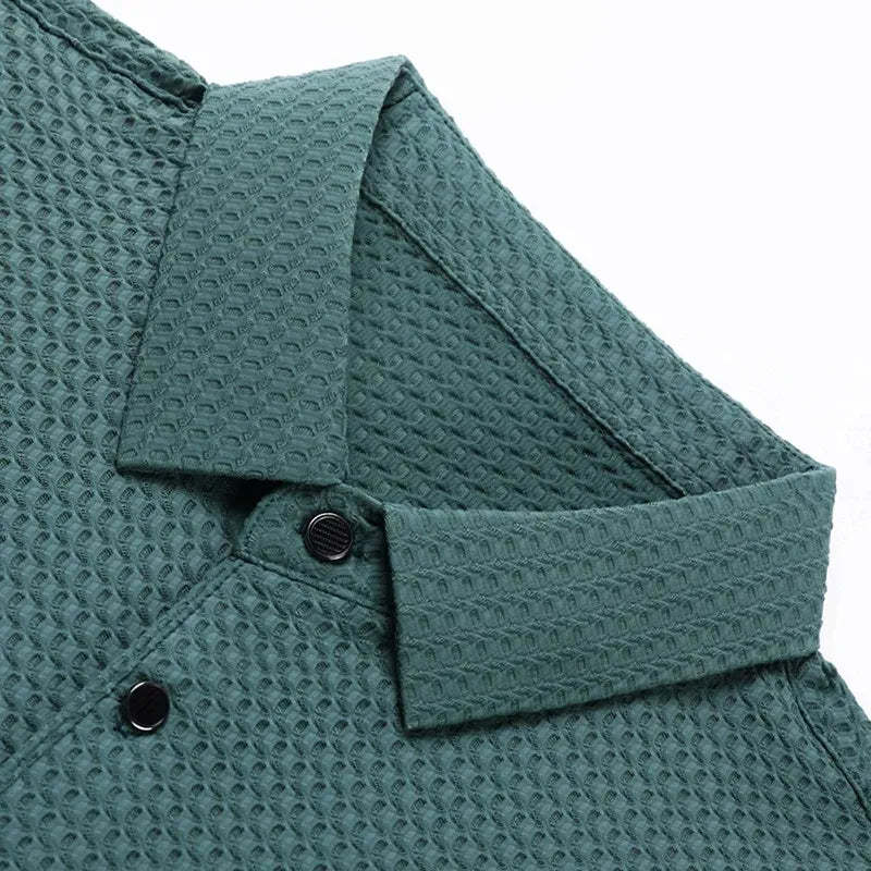 Stylish Design: Featuring a classic polo collar and a two-button placket.