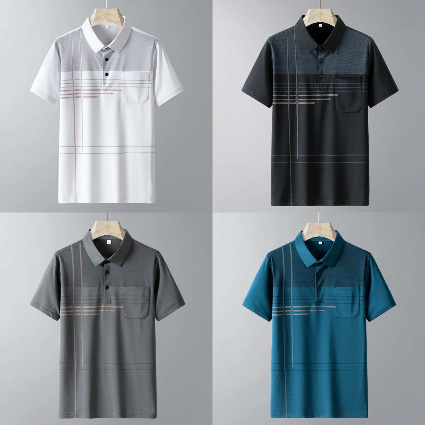 Short Sleeve Men's Striped Pockets polo t shirt (Pack of 4)