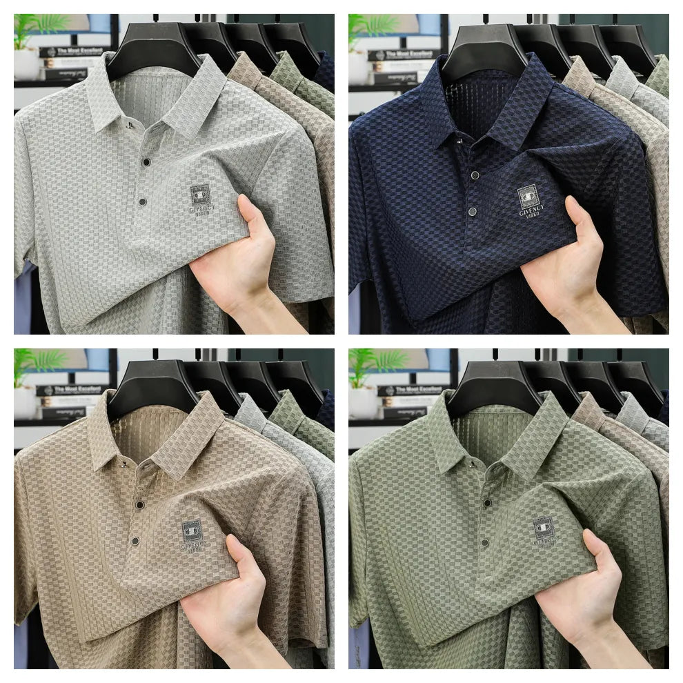 Summer Men's Luxury Quality Ice Silk Plaid Polo Tshirt (Pack of 4)