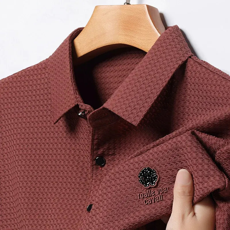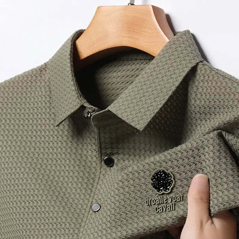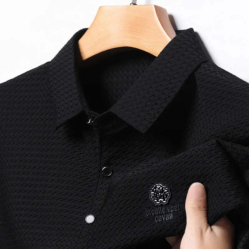 Stylish Design: Featuring a classic polo collar and a two-button placket.