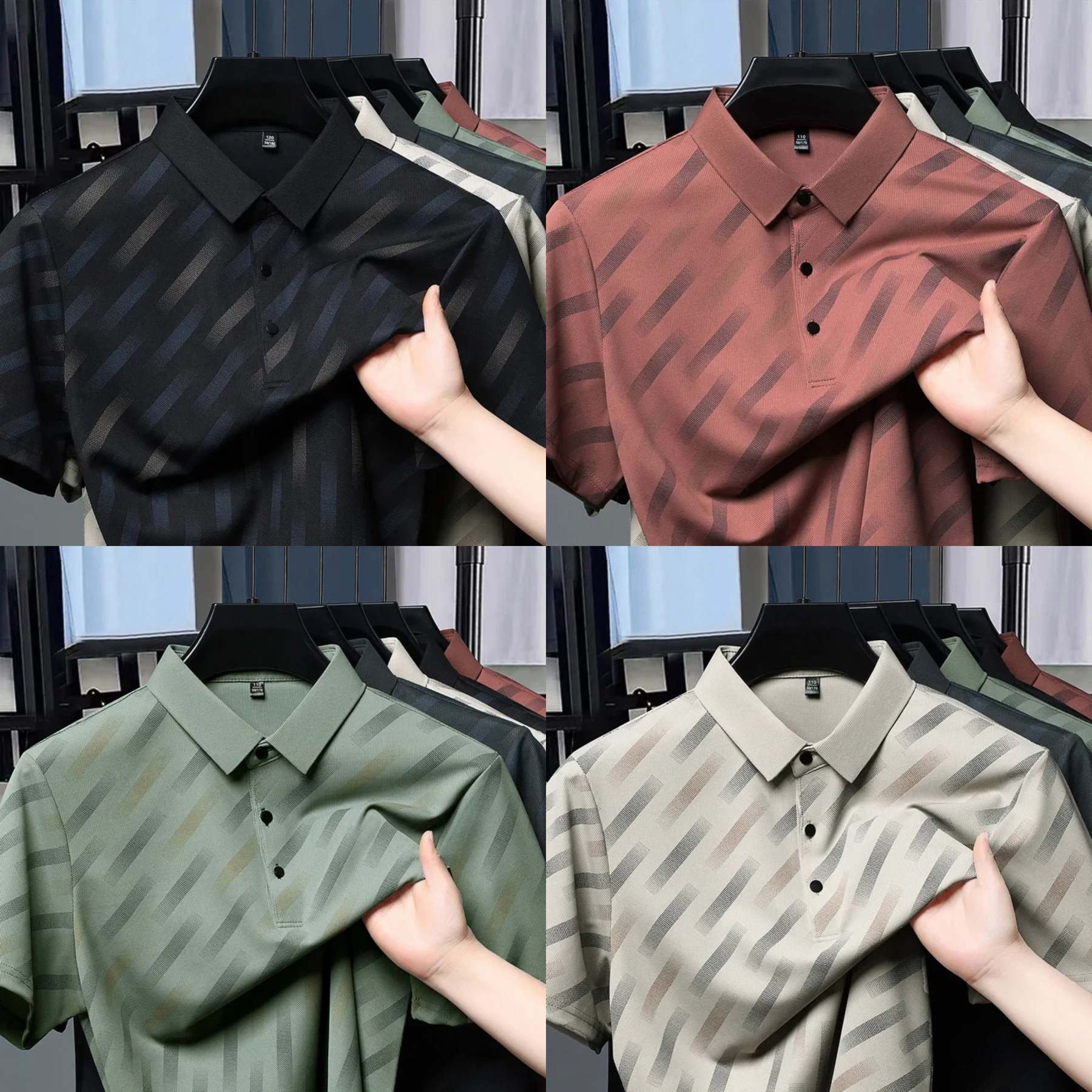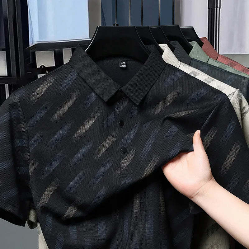 Summer Seamless luxury Printed Stripes Short Sleeved Men's Polo
